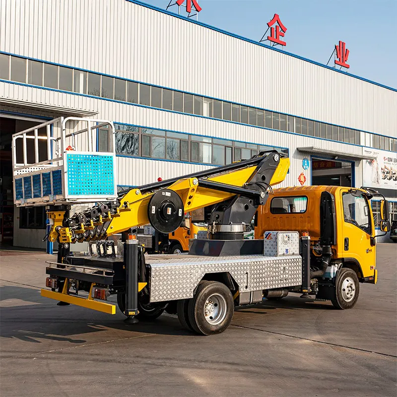 Конструкция на шасси грузовика делает транспортное средство легким для транспортировки с одной рабочей площадки на другую, в то время как выдвижная стрела может регулироваться до диапазона высот и углов, обеспечивая универсальный доступ для рабочих. Эта платформа может перевозить нескольких рабочих и их инструменты, позволяя повысить эффективность во время проектов.